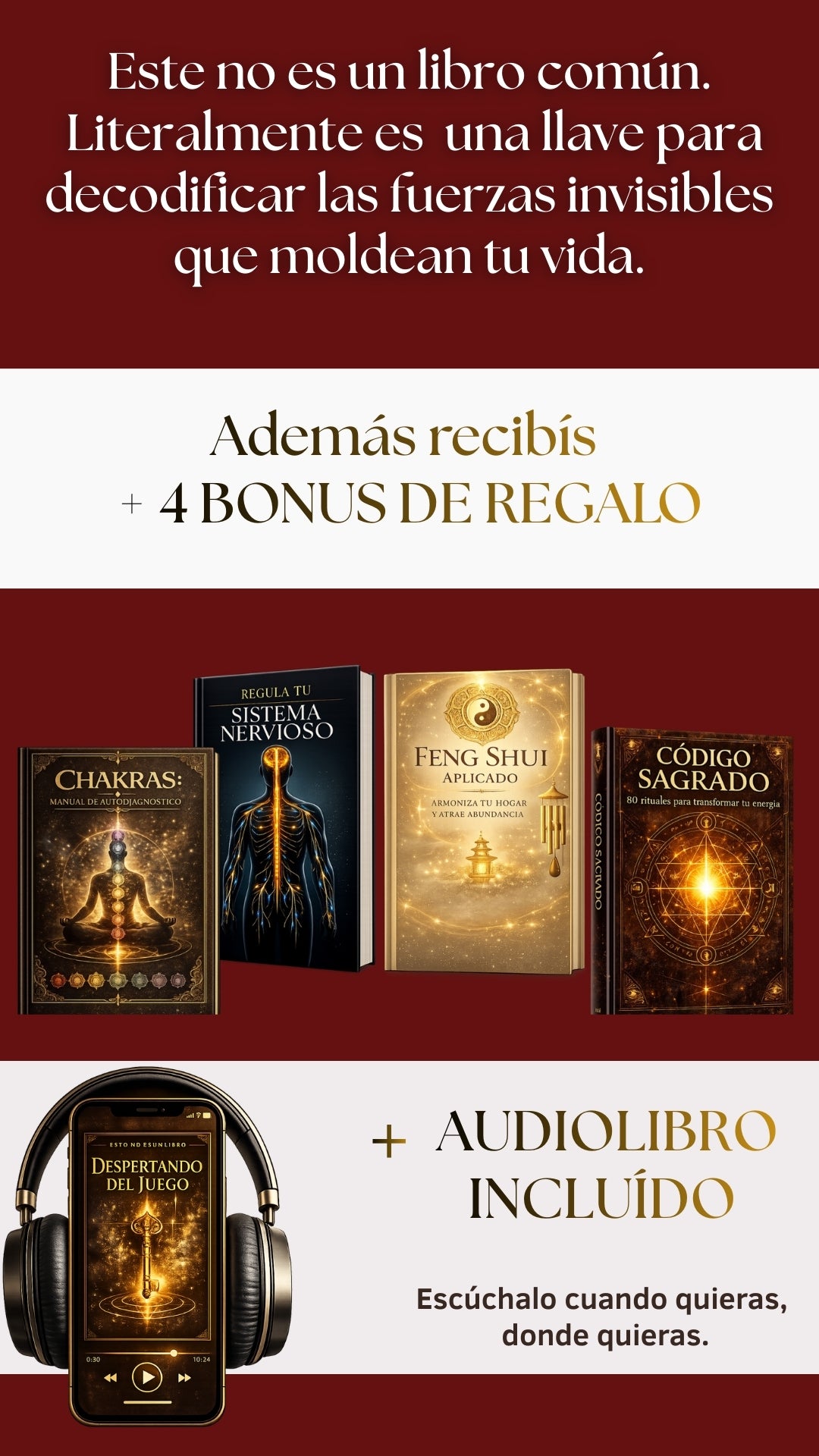 Además, tu compra incluye todos los bonus de regalo y la versión en audiolibro, para que puedas leer, escuchar e integrar el contenido de la forma que mejor se adapte a vos.